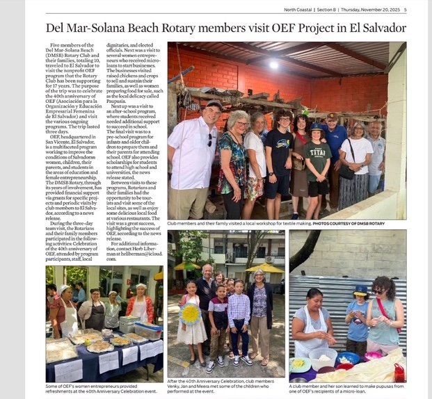 Since our inception in 1992, the Del Mar Solana Beach Rotary Club has been dedicated to making a difference in our community and beyond. As part of Rotary District 5340, encompassing 67 clubs in San Diego and Imperial Counties, we're driven by a passion for service and a commitment to meaningful impact.